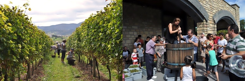 Este domingo, 21 de septiembre, se celebró el III Día de la Vendimia de Hondarribia. Organizado por los dos productores de Txakoli de la ciudad, Hiruzta y Beko Errota, este año, se contó con la presencia de la cantinera del barrio de Jaizubia, al que pertenecen Hiruzta y Beko Errota. Ella fue la encargada de hacer el primer pisado de la cosecha 2014.