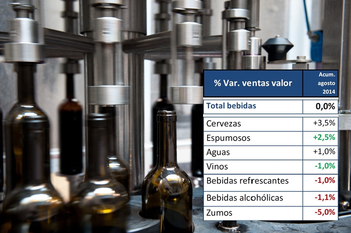 Los vinos espumosos son la segunda bebida que más crece en los ocho primeros meses de 2014, siendo el crecimiento del 2,5%, sólo superado por el de las cervezas, que crecen un 3,5%.