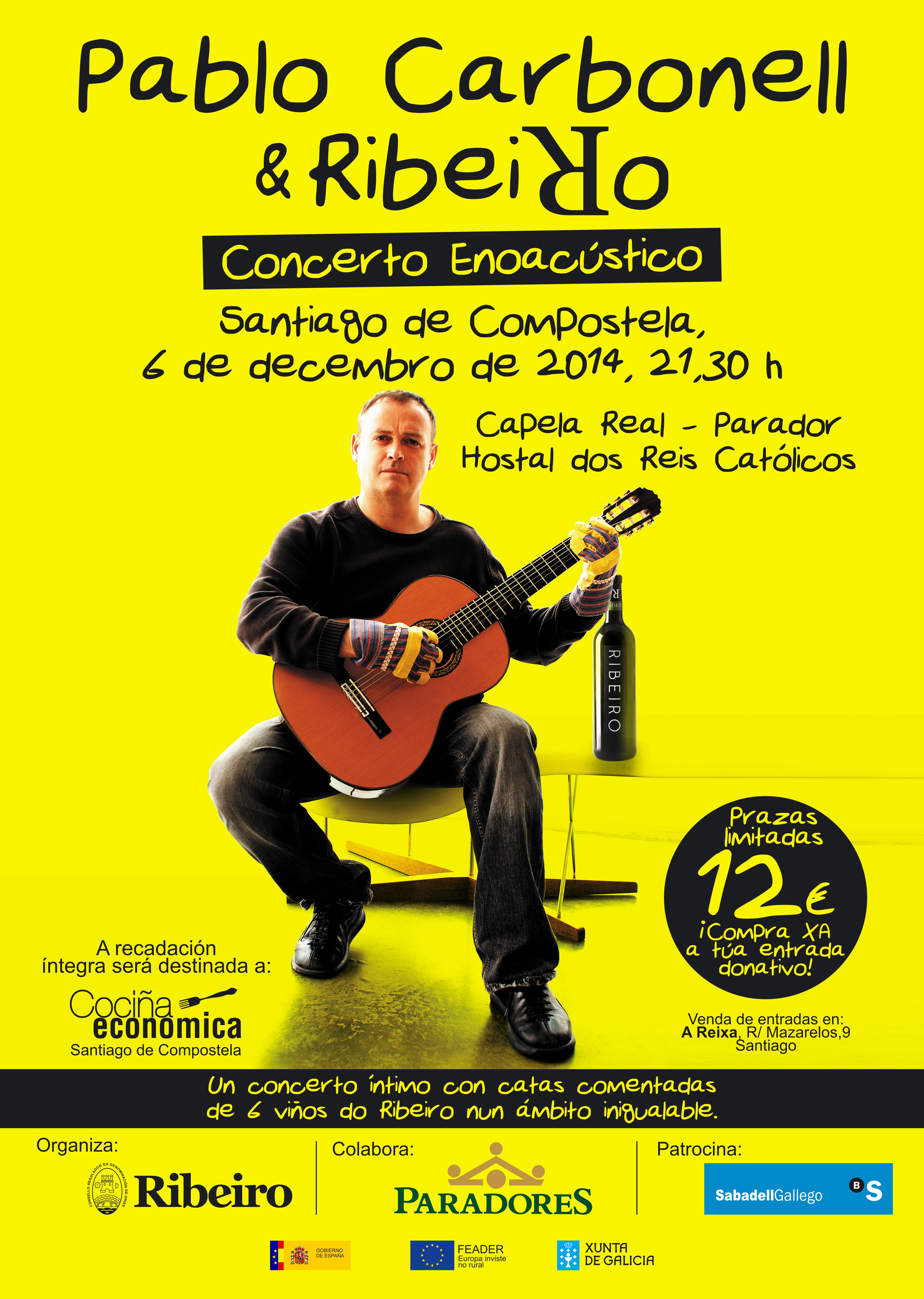 La Denominación de Origen organiza un concierto enoacústico de Pablo Carbonell a beneficio de la cocina económica de Santiago, que se celebrará el 6 de diciembre en la Capilla Real del Parador Hostal dos Reis Católicos de la capital gallega.