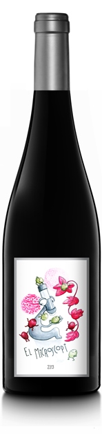 El Microscopi 2013 es un vino elaborado con las variedades merlot, carinyena y cabernet sauvignon. No está filtrado, se emplean las propias levaduras y bacterias autóctonas de la uva para la fermentación y los trasiegos y el embotellado se realizan siguiendo el ciclo de la luna. PVP. 8 €
