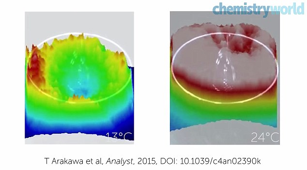 A los 13°C, la concentración de alcohol en el borde de una copa de vino tradicional fue más alta que en el centro. "Este fenómeno de anillo nos permite disfrutar del aroma del vino sin la interferencia de etanol gaseoso", explica Mitsubayashi. El mismo patrón no era visible cuando la temperatura fue mayor, o cuando se trataba de una copa de cóctel o vaso de vidrio. "En consecuencia, queda demostrado que efectivamente la forma de la copa de vino tiene un diseño funcional muy sofisticado y válido para degustar y disfrutar del vino" afirma Mitsubayashi.