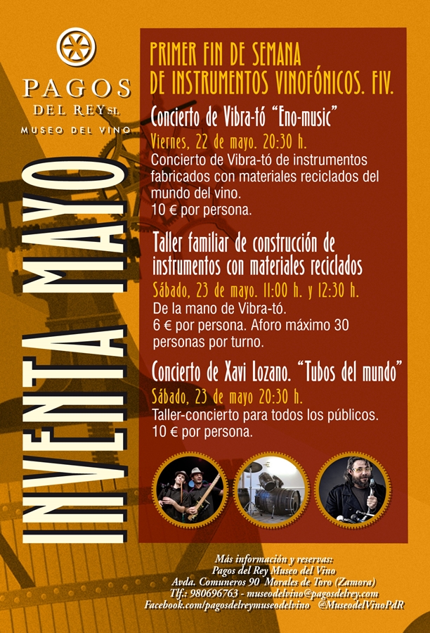 El Museo del Vino de Pagos del Rey ha organizado una sorprendente actividad para el fin de semana del 22 y 23 mayo. Se trata de una propuesta que aúna música, cultura de vino, reciclaje y creatividad en forma de conciertos para todos los públicos y talleres familiares.