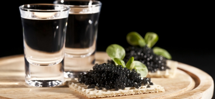 Uno de los más conocidos (pero solo cuando lo comentamos) es el de la vodka y el caviar. Ésta armonía llegada desde Rusia hace que el sabor del caviar se realce después de dar un sorbo a la vodka. El objetivo de la vodka es limpiar nuestra boca y las papilas gustativas preparándola para una siguiente cucharada de las apreciadas huevas de pescado.