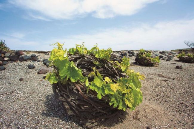 ¿Qué mejor que explotar la viña en Santorini, una planta cultivada que crece allá donde ninguna otra podría hacerlo? Pero la dureza del clima y de la geografía de Santorini exige una viticultura heroica. Algunas veces imagino a los primeros viñadores de la isla, frustrados ante la imagen de sus viñas peladas por el viento y quemadas por el sol, hasta que desarrollaron un sistema ingenioso, perfectamente adaptado a su terruño.