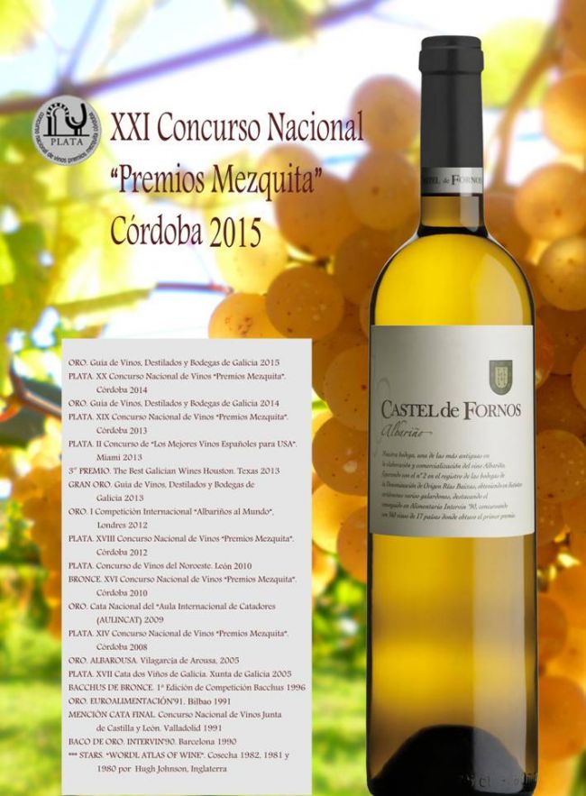 Castel de Fornos Albariño D.O. Rías Baixas ha sido galardonado el pasado 30 de octubre con el prestigioso premio Mezquita de Plata, otorgado durante el XXI Concurso de Vinos Premios Mezquita que tiene lugar en el Salón de los Mosaicos del Alcázar de los Reyes Cristianos de Córdoba.