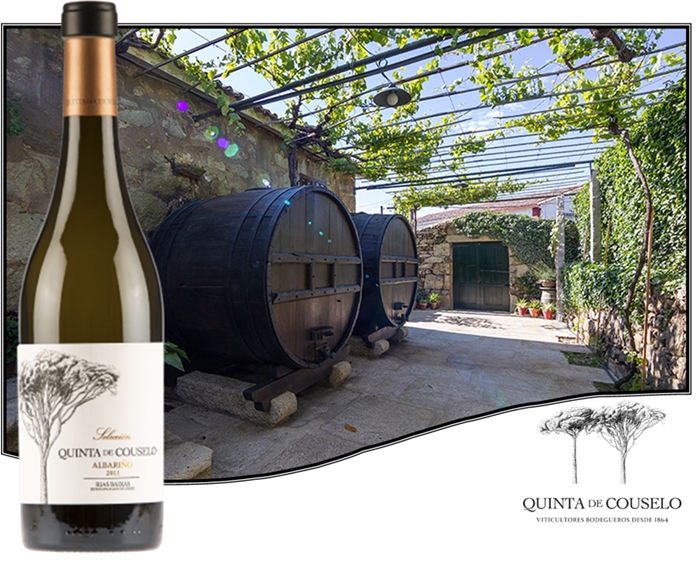 Las variedades principales son la uva albariño, la variedad reina de la DO Rias Baixas, la caiño, loureiro y treixadura que crecen en un terruño franco y pletórico de materia orgánica. Para elaborar el vino protagonista de hoy, José Manuel Martínez, su enólogo, cultiva poco más de dos hectáreas propias de cepas de albariño de más de 30 años, con las que elabora unas 60.000 botellas de Quinta de Couselo. Para ello usa dos sistemas diferentes: espalderas y emparrado gallego.