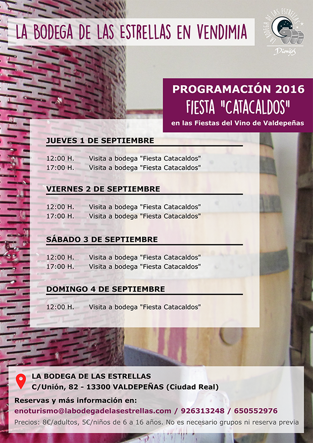 Las Fiestas del Vino de Valdepeñas son la celebración de la vendimia y La Bodega de las Estrellas quiere compartir este esencial momento de elaboración de la añada 2016, celebrando todos los días la Fiesta "Catacaldos".