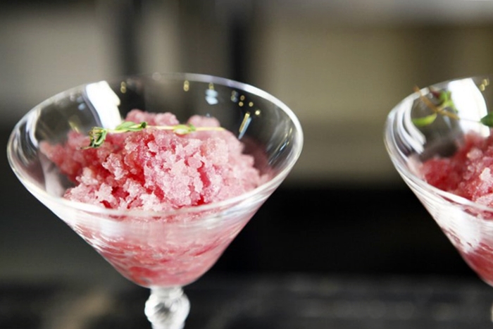 Todo lo que tienes que hacer es congelar vino en un recipiente pequeño (una cubitera es ideal), cuando estén congelados usa una picadora y crea tu delicioso sorbete. Puedes añadirle fruta picada para hacerlo más interesante.