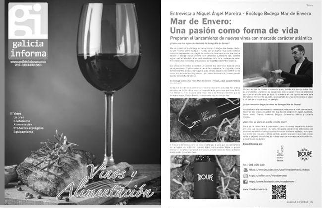 La revista Galicia Informa, publicación periódica en la que se da a conocer la historia, novedades, filosofía y proyectos de empresas y profesionales destacados en sus sectores, ha publicado en su número 8 una entrevista con Manyo Moreira, enólogo de la bodega de Rías Baixas Mar de Envero.