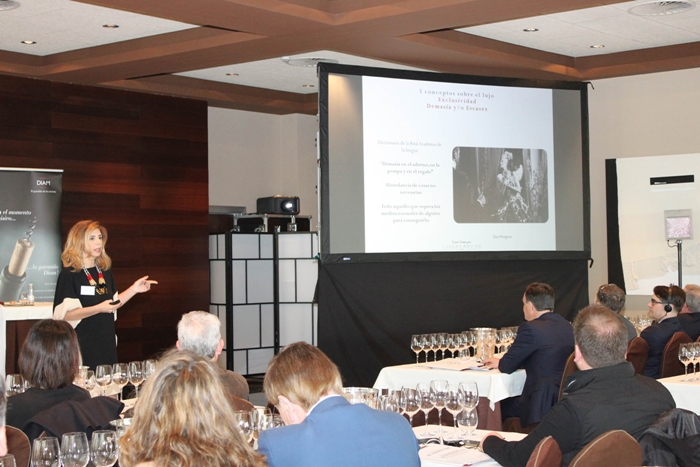 Facilitar a las bodegas herramientas para posicionarse en la gama alta del mercado fue el objetivo principal de la clase magistral impartida por Susana Campuzano, directora del Programa Superior de Dirección y Gestión Estratégica del Universo del Lujo de IE Business School y autora del libro 'La fórmula del lujo'. Una clase magistral unánimemente elogiada por su gran sentido didáctico y alto contenido práctico, en la que analizó el significado histórico del consumo de productos de lujo, diferenciándolos de los productos 'premium', y detalló las características y tendencias actuales de los mercados 'premium' y 'gourmet', en los que "el vino ha pasado a ser un producto consumido para la autosatisfacción". "El lujo es cultura y, en el caso del vino, cuanto más iniciado esté el cliente, más lo va a poder valorar", afirmó Susana Campuzano, que expuso las diferentes formas de posicionamiento (por precio, por los atributos del producto, por diferenciación de la marca, etc.) y aportó dos ejemplos concretos del trabajo realizado para posicionar en el mercado del lujo a las bodegas Abadía Retuerta y Marqués de Riscal.