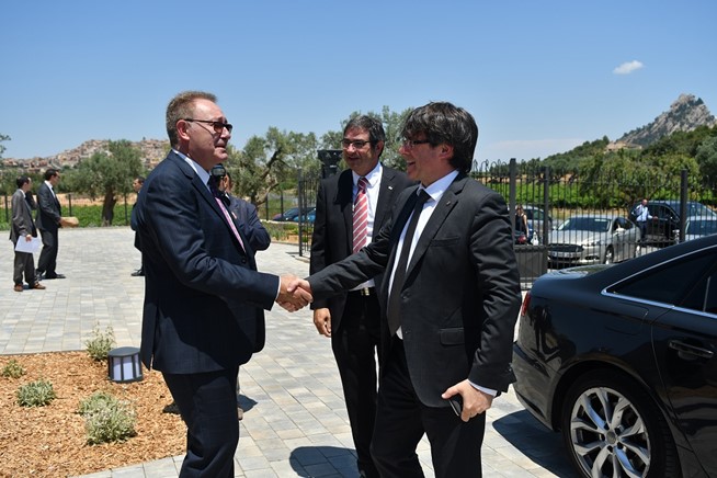 El President de la Generalitat, Carles Puigdemont, inauguró ayer Les Vinyes del Convent, la nueva bodega del empresario y viticultor Elías Gil en Horta de Sant Joan.