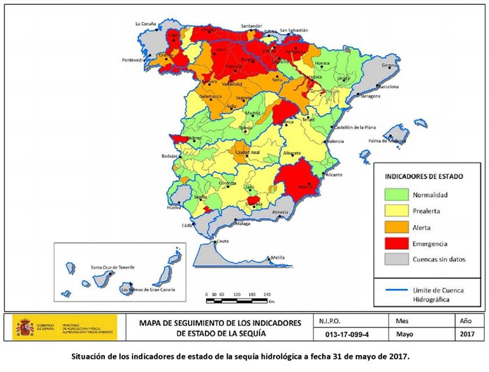Pese a las ayudas puestas en marcha por el Ministerio en relación a la sequía, consideradas insuficientes por Unión de Uniones que ha apuntado también hacia una necesaria mejora presupuestaria y técnica del sistema de seguros agrarios, la organización destaca que con los embalses a un 52% de su capacidad –un 30 % menos de lo que sería normal en estas fechas- se hace extremadamente complicada la situación en las cuencas con menos reservas, que son Duero (46 %) Júcar (35 %) y Segura (26 %). Igualmente la situación en la cabecera del Tajo es crítica, con sólo un 13 % de los recursos hídricos que sería capaz de almacenar.