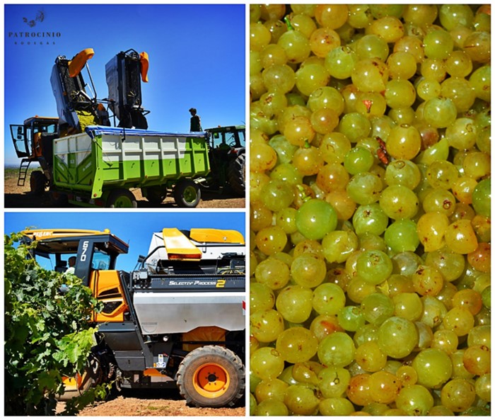 Bodegas Patrocinio apuesta por la variedad del Tempranillo Blanco. Una vendimia temprana de principios de septiembre muestra un escaso rendimiento en los viñedos pero una materia prima de gran calidad y concentración que presenta bayas sueltas en los racimos. En los últimos años Bodegas Patrocinio ha tenido una clara visión de potenciar esta variedad. Por ello, se han realizado plantaciones nuevas con viñedos de altura que han pasado a convertirse en un componente esencial de sus vinos blancos de intensas notas florales y frutales.