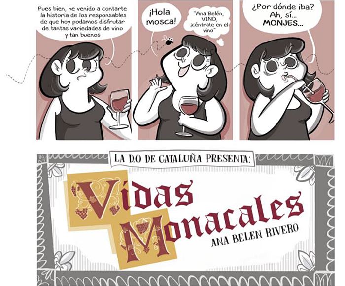 Vidas Monacales es el título del nuevo Vinómic, el proyecto de la Denominación de Origen Catalunya que marida vino y cómic. Firmado por la artista gráfica Ana Belén Rivero, la historieta está protagonizada por ella misma quien, viéndose delante del papel en blanco a la hora de hacer un cómic sobre vino, decide explicar los orígenes del vino en Catalunya, y el importante papel que tuvieron los monjes de la Orden del Císter. Una historia divertida y un poco loca, al más puro estilo de los trabajos de la artista.