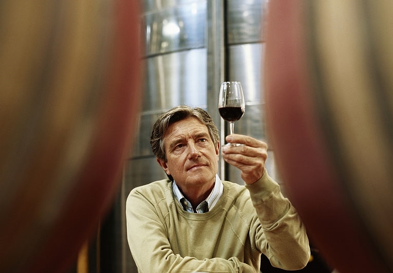 Colocando la copa en posición horizontal sobre un fondo blanco nos fijamos en el punto de menor espesor del vino, que indica la edad y evolución.