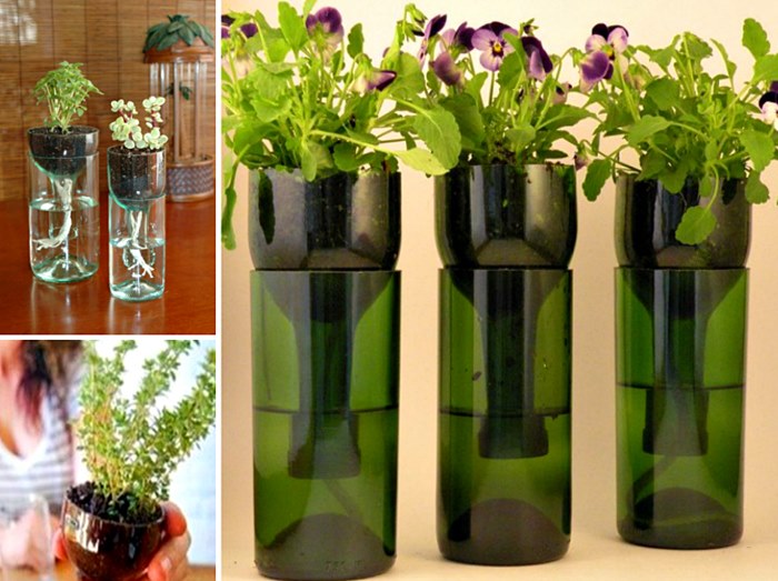 Las botellas de vino son increíbles para sembrar plantas pequeñas ya que así como funcionan como maceta para estas, te ahorran el trabajo de tener que colocarlas en una ventana o en una zona específica para regarlas.