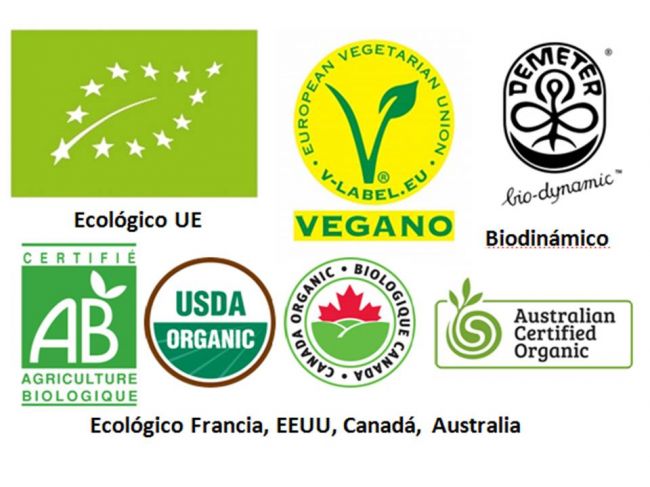 Vinos biológicos, orgánicos o ecológicos: Son los más comunes de los cuatro. Para que un vino esté certificado como orgánico es preciso seguir, desde la viña a la botella, los principios de la viticultura ecológica. Los organismos de certificación europeo (Ecocert) o americano (NOP), entre otros, tienen una lista estricta que hay que respetar para poder poner en la botella la certificación. Si los vinos van a salir al mercado exterior deberán respetar la lista del país de origen y del país de destino.