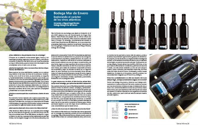 La revista Galicia Informa recoge en su número 13 una amplia entrevista con Manyo Moreira, enólogo de la bodega Mar de Envero, en la que profundiza en su nueva línea de vinos «Experiencias del Atlántico», además de avanzar interesantes novedades para el futuro.