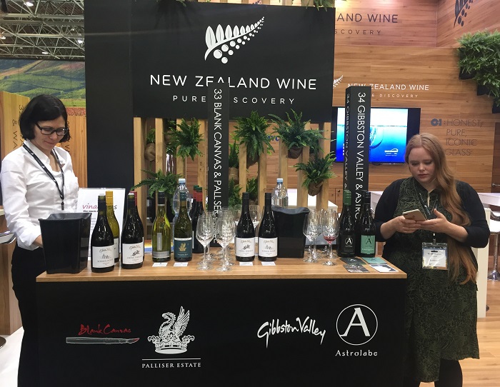 Como en este apartado sería inapropiado señalar a empresas españolas, mostraré un contraste entre un stand francés del Vignoble d'Alsace y un stand neozelandés. Cabe mencionar que para no condicionar la interacción, las fotos siempre siguen el mismo procedimiento. 1) degustación de los vinos 2) propuesta de una foto para la prensa internacional.