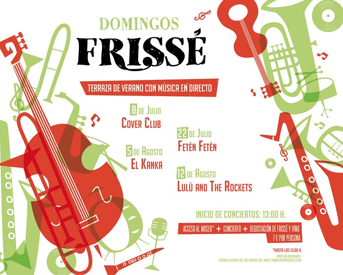 Todos los conciertos tiene fijada su hora de inicio a las 13:00 h., las entradas cuestan 7 € y dan derecho a visitar el museo en modalidad libre de 11:00 a 13:00 h., y a disfrutar del concierto y de la degustación de vinos Pagos del Rey y Frissé. Pueden adquirirse en la taquilla de Pagos del Rey Museo del Vino y en Entradasgo.com