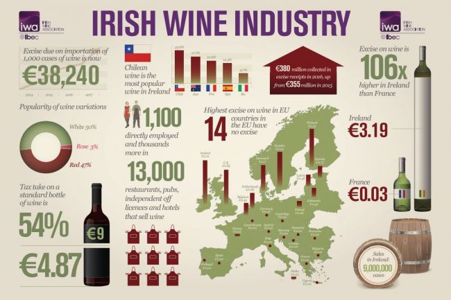 Debido a que Irlanda tiene la tasa de impuestos más alta de Europa, bebemos muchos vinos varietales de gama de entrada procedentes de Italia, Chile y Australia. A la vez, más gente está fijándose en vinos de más valor de Rioja y Borgoña.