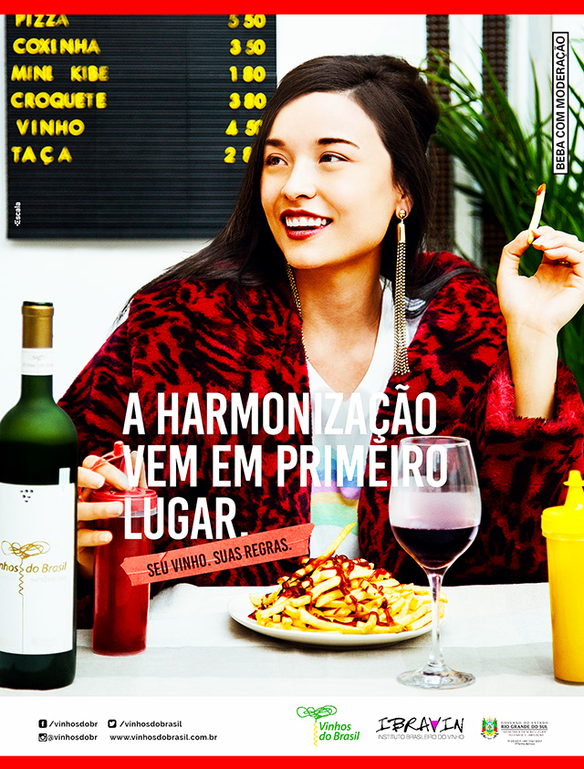 La campaña es de Escala Propaganda (aprobada por Carlos Paviani, Diego Bertolini e Iassanã dos Santos). El video de la campaña publicitaria "Su Vino, sus Reglas" se puede verse en Facebook y en el Instagram de los Vinos de Brasil o en el canal de YouTube: https://www.youtube.com/watch?v=czW1D2bjByw . La campaña es interesante, pero hago una reserva sobre los anuncios: ellos muestran personas solas, señoritas simpáticas con botellas. Ahora bien, los Millenials se caracterizan por socializar en Grupos y vino es titpicameiente mejor cuando se toma con amigos. ¿Entonces por qué mostrar al consumidor (o consumidora) sola, como una persona solitaria? ¿Y necesitaba estar con un cañito de plástico, el villano ecológico de la hora?