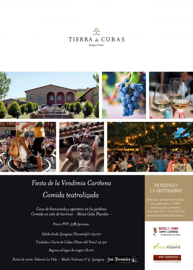 Se trata de una comida teatralizada y se ha pensado en todos los detalles. Disponemos de servicio de autobus que partira de Zaragoza para trasladar a los asistentes a Cariñena y que disfruten de todos los actos programados. Al medio día les trasladaremos a nuestra bodega y una vez aqui se les ofrecera un cóctel de bienvenida, finalmente se celebrará una comida teatralizada en la sala de barricas.