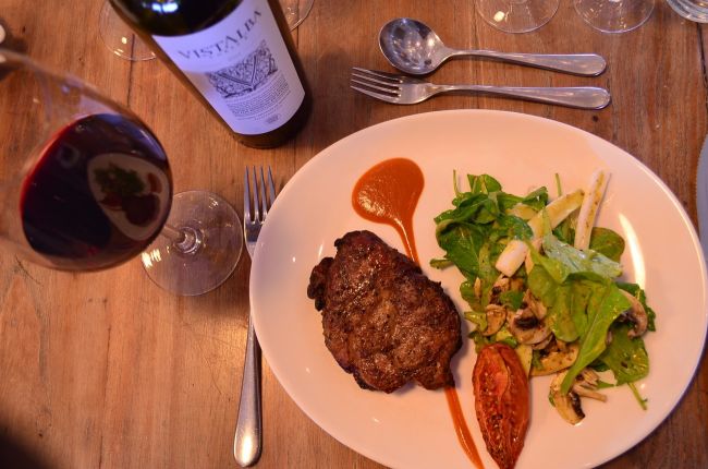 Los principales fueron una explosión de sabores en nuestras bocas, acompañados con un Vistalba Corte B 2015 (blend de Malbec 70 %, Cabernet Sauvignon 20% y Bonarda 10 %) que le hacía frente a cualquier carne que se le pusiera enfrente, con carácter tanto en boca como en nariz.