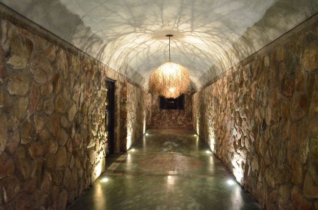 En el recorrido de las instalaciones nos deleitamos con la ambientación exquisitamente determinada por la iluminación puntual, los muros de piedra y las luminarias hechas de ramas secas.