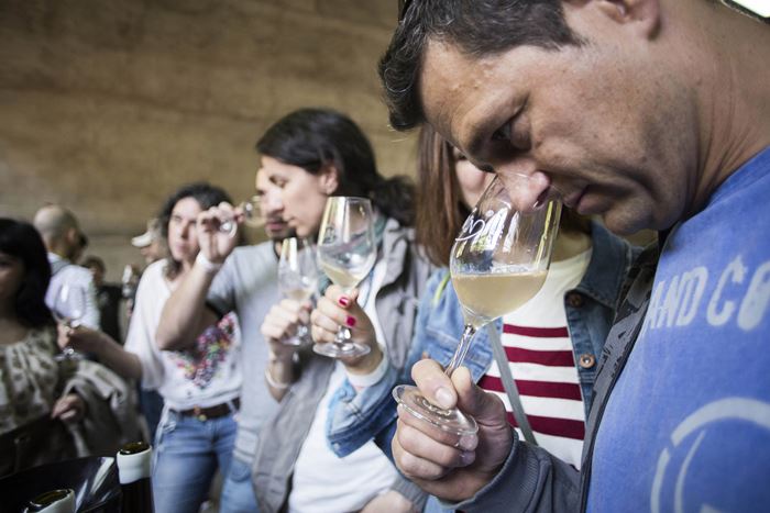 Según datos del OEMV, 18 millones y medio de españoles beben entre cinco y seis copas de vino a la semana. En la foto, Feria de vinos naturales Vino Vivo 2016