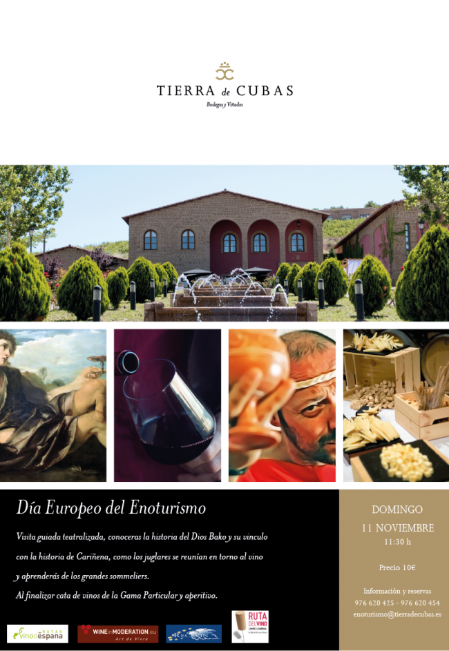 En Tierra de Cubas hemos querido celebrar un dia tan especial, como es el día europeo del Enoturismo. Hemos preparado una visita teatralizada en la bodega, conoceremos la historia del Dios Bako y su vínculo con la historia de Cariñena, como los juglares se reunían en torno al vino y aprenderás de los grandes sommeliers.