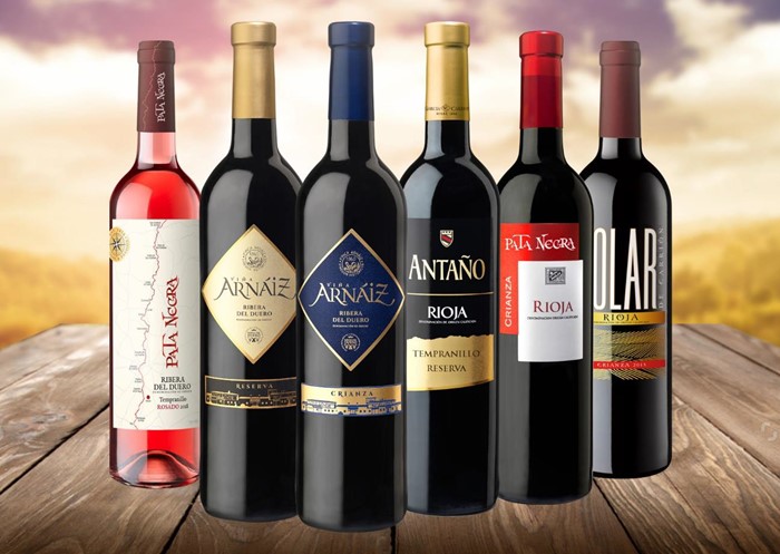 Estos 6 oros pertenecen a dos de Denominaciones de Origen de referencia: Rioja, con los vinos Antaño Reserva, Pata Negra Crianza y Solar de Carrión Crianza; Ribera del Duero, con los vinos Viña Arnáiz Crianza y Reserva y Pata Negra Rosado.