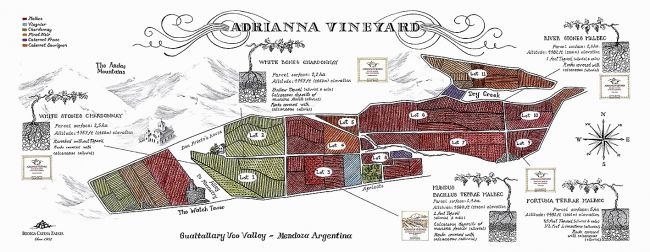 Encontrar el Viñedo Perfecto no fue asunto delicado, cuenta Laura Catena: " mi padre plantó en Adrianna buscando más frío, sin saber que reposaba en un río seco con una infinidad de parcelas de una gran diversidad. Después de haber vinificado las uvas de cada pedazo de tierra por separado, encontramos el oro, pero ha sido encontrado completamente por casualidad.