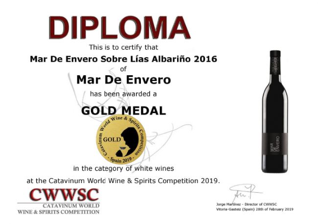 Los albariños de la bodega de Rías Baixas Mar de Envero, Troupe y Mar de Envero elaborado sobre lías, han recibido sendas Medallas de Oro en la edición 2019 del concurso internacional Catavinum World Wine & Spirit Competition.