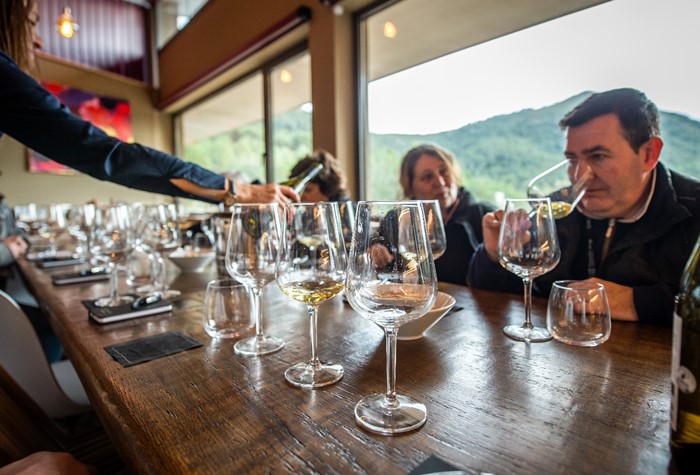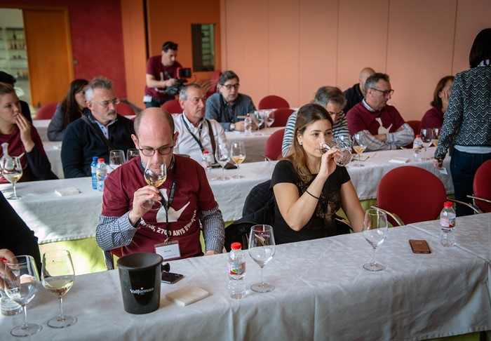 De nuevo, seguimos visitando diversas bodegas por grupos después de habernos reforzado el estomago con un suculento almuerzo en medio de las viñas. Sumilleres, docentes, periodistas y bodegueros compartimos nuestra visión de los diferentes productos en una puesta en común tras nuestra propia percepción desde diversas vertientes del mundo del vino.