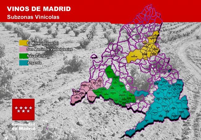 España ha presentado ante la Comisión de la UE una modificación No menor del pliego de condiciones de la denominación de origen "Vinos de Madrid", disponiendo los interesados de un plazo de dos meses, ya cumplidos, para oponerse a la referida modificación. Con la citada modificación se persigue ampliar la zona geográfica protegida extendiéndola a una nueva zona vitivinícola denominada "El Molar". Con ello, la Denominación de Origen Protegida (DOP) "Vinos de Madrid" dispondría de cuatro subzonas vitivinícolas: Arganda, Navalcarnero, San Martín de Valdeiglesias y El Molar.