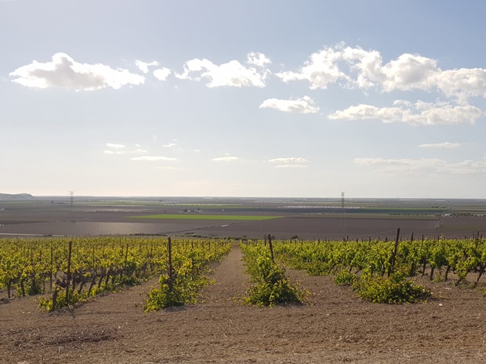 Viñedos Bodegas González Palacios, al fondo, el Guadalquivir