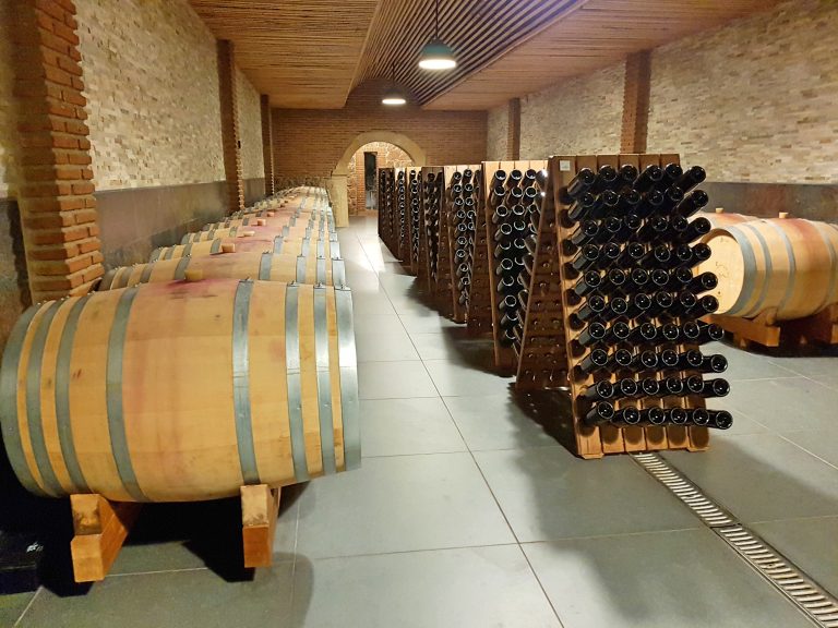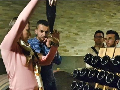 Y sin olvidar que esto es una visita de clase práctica, dirigida a los alumnos de la Escuela Europea del Vino de Badajoz, pasamos a la sala de barricas y su profesora les cuenta el método tradicional o champanoise por el que los vinos realizan una segunda fermentación en botella, que provoca que queden moléculas de CO2 en el líquido y por ello sea espumoso.