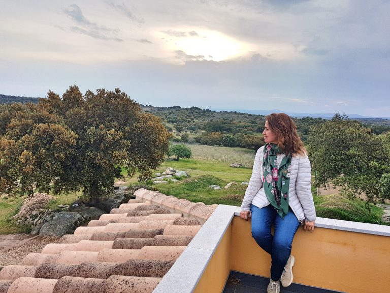 Para finalizar la visita pasamos al restaurante con un precioso mirador que nos ofrece vistas panorámicas para la contemplación y el disfrute de la dehesa extremeña, al fondo preside el Castillo de Alburquerque. En este marco catamos algunas de sus mejores referencias.