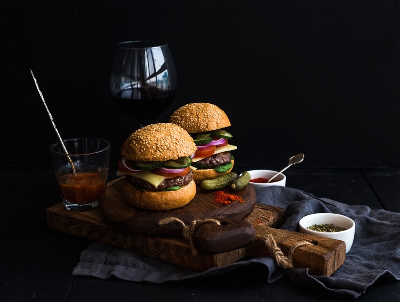 Y sí, en algún momento llegaríamos a las hamburguesas de carne roja, las clásicas de clásicas, esas que sin lugar a dudas se nos dibujan en la cabeza cuando estamos antojados de una hamburguesa. Acá los tintos con más estructura serán el complemento ideal para contrarrestar la grasa de la carne. El abanico de opciones es más que amplio.