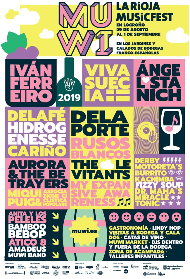 Nos esperan unos días en agosto (del 29 al 1) en el que la cuarta edición de MUWI La Rioja Music Fest 2019 desplegará un completo plantel de novedades en el apartado de actividades, gastronomía y experiencias que se verá reforzado con la incorporación de alguna sorpresa que redundará en que el ADN riojano del festival sea aún más auténtico en las actividades paralelas programadas, MUWI Market, los talleres infantiles, exposiciones, etc..., cuatro días en los que una experiencia tomará la ciudad combinando dos elementos: la música y el mundo del vino y que se ofrecerán más de 30 actuaciones en los dos escenarios principales: la Muralla de El Revellín y en Bodegas Franco-Españolas, un auténtico festival #alariojana.