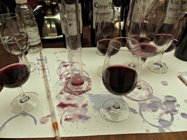 Acá lo que hacemos es trabajar con las elaboraciones tradicionales, cada uva fermentada y añejada (si el estilo de vino lo requiere) por separado. Una vez que los vinos están listos (muchas veces pasan a llamarse «componentes») comienza el juego de preparar distintas opciones para el blend dependiendo de lo que se busque, cambiando y modificando cantidades hasta dar con el ensamblaje buscado. Para esto se trabaja primero con ensayos. Por ejemplo, se toma una botella de cada vino directamente del depósito donde esté (tanque, pileta, barrica) y con la ayuda de una probeta y una pipeta se van armando distintas alternativas. Si la probeta (como generalmente sucede) es de 100ml, se toma cada ml como si fuera un 1%, entonces si la mezcla que nos gustó tiene 35ml del componente A, 48ml del componente B y 17ml es del componente C, entonces a la hora de armar el corte en bodega corresponderá 35% del componente A, 48% del componente B y 17% del componente C.