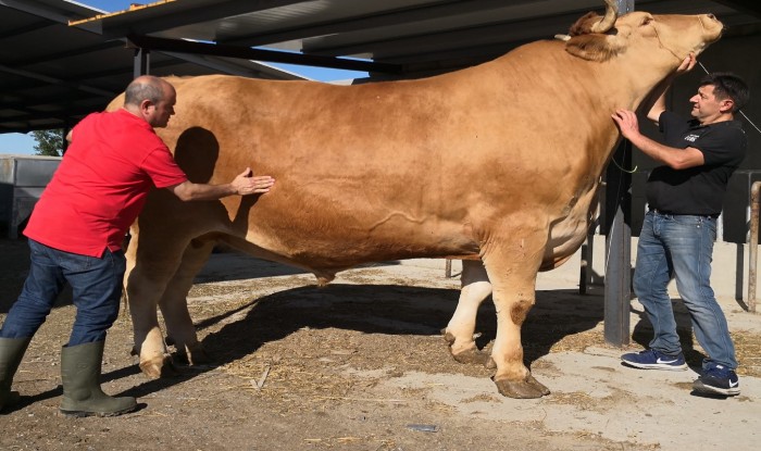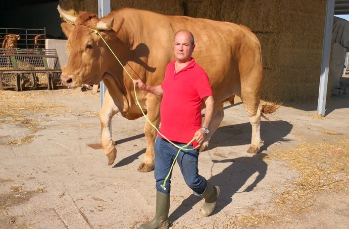 Goliat, de raza rubia gallega, tiene siete años, pesa 2.300 kilos y roza los dos metros de altura