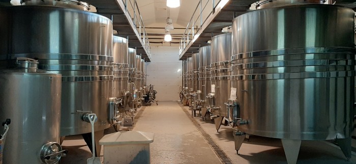 Tras la recogida y selección manual de la uva, esta pasa a la sala de vinificación. Una sala con depósitos que recogerán las uvas separando estas por parcelas. Varios tanques con diferentes capacidades perfilarán los mostos que posteriormente, tras su fermentación, llenarán las barricas en una sala contigua.