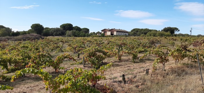 El viaje desde la capital se hace cómodo y fácil, la comunicación es buena, y según uno se va acercando a las faldas de Gredos por su vertiente sur el paisaje se hace más bonito, menos monótono. Las tierras de labranza van dejando paso a zonas de pinares donde el terreno se vuelve más pedregoso. El estrecho cañón de la M-501 que acompaña al Arroyo de Vallefrías y que en su mitad cruza al famosos río Alberche, marca el cambio en la orografía y a su vez divide estas dos subzonas madrileñas (Navalcarnero y San Martín de Valdeiglesias). Tras bordear la localidad de Pelayos de la Presa y girar a la izquierda, una larga subida entre pinos marca el camino que conduce a la bodega. En lo alto, un solitario camino de tierra desembocará en Las Moradas de San Martín. El silencio, la tranquilidad y el cálido sol de finales de Octubre me reciben a mi llegada.