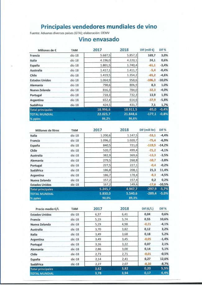 Nuestro complejo de inferioridad con relación a nuestras variedades autóctonas se paga con un pobre volumen de exportación, en caída, y un precio médio ridículo. ¿A quien le interesa un vino español hecho con variedades francesas cuando puede comprar los auténticos vinos franceses y las imitaciones que se producen en muchos otros países? Cada día hay menos personas que ignoran que las variedades francesas no son apropiadas para nuestro clima y por esto nuestra exportación cae.