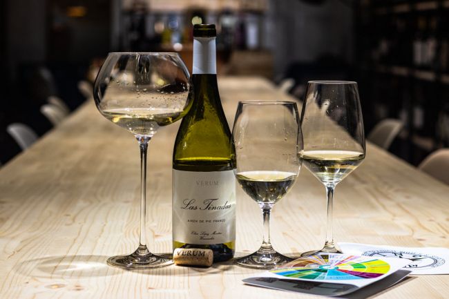 En las tres copas, se destaca la limpieza y la elegancia del vino. Si tenemos en cuenta que el airén no es una variedad muy aromática, en este vino se muestra una singularidad y elegancia difícil de encontrar en otros vinos.
