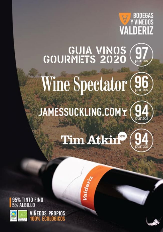 El vino más representativo de la bodega ribereña está logrando altas puntuaciones en diversas guías y revistas especializadas de todo el mundo. La española Guía Gourmets calificó Valderiz 2016 con 97 puntos, por lo que se ha convertido en el mejor vino de España por debajo de 20 euros (PVP); mientras que el crítico americano James Suckling y el Master of Wine y periodista británico Tim Atkins lo han valorado con 94 puntos.
