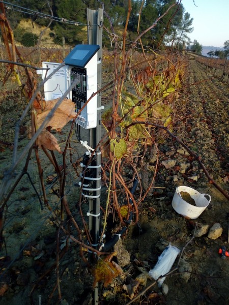 En el marco de la prueba piloto, se han instalado en seis fincas vitivinícolas del Alt Penedès unos sensores que se han clavado a una profundidad de entre 15 y 60 cm. Los sensores detectan la humedad del suelo y aportan información sobre la profundidad a la que se distribuye el agua y la rapidez con que lo hace. Los datos que se obtienen se envían en tiempo real al Observatorio del Ebro mediante la red de telefonía móvil, y se combinan con los datos de pluviometría y evapotranspiración que registran las estaciones del SMC en el Penedés. La información resultante es la base de un sistema de información de la sequía que, semanalmente, aportará datos sobre las necesidades de agua de los viñedos del Penedés y sobre el agua disponible en el suelo para satisfacer estas necesidades.