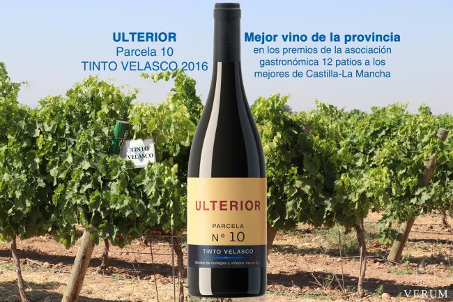 El mejor vino de la provincia de Ciudad Real para esta asociación de cata y gastronomía ha sido ULTERIOR Parcela 10 Tinto Velasco 2016. El top 5 de los mejores vinos de la región ha sido elegido por los miembros de la asociación "12 patios" que tiene como objetivo reconocer la labor de las bodegas que apuestan por la calidad en todo el proceso, desde el viñedo hasta la bodega, así también como la proyección de ésta.